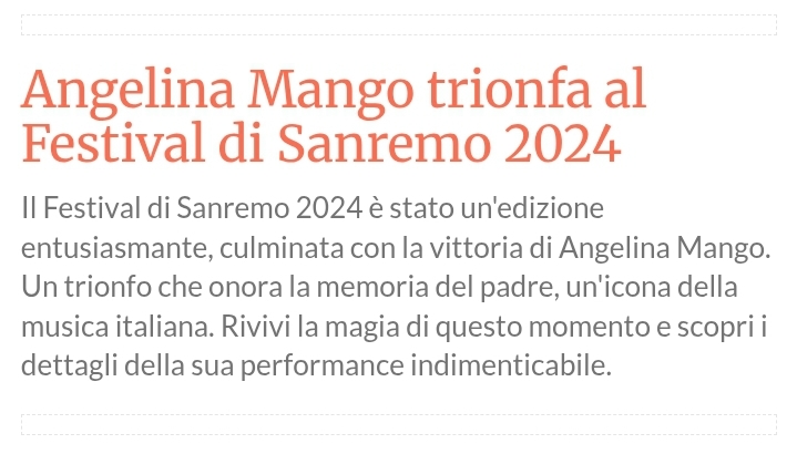 🏆 Vincitrice: Angelina Mango con "La noia". 🎶 "La noia" ha ottenuto forte circolazione digitale e streaming.